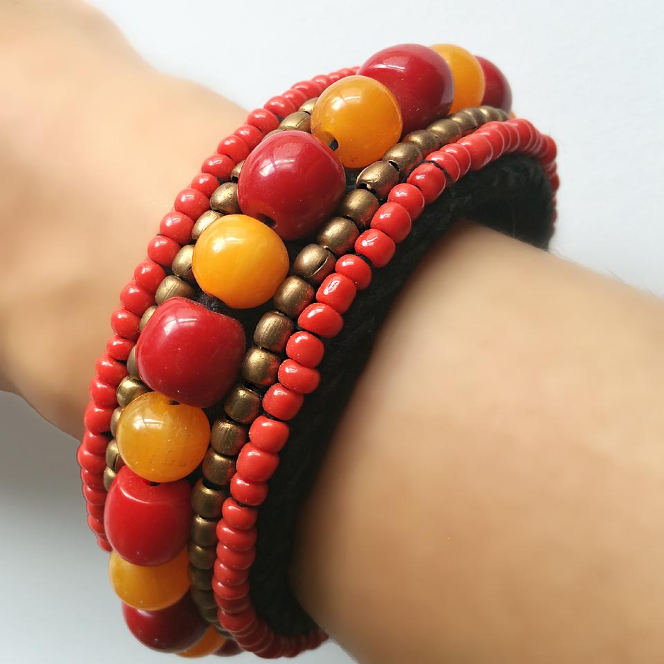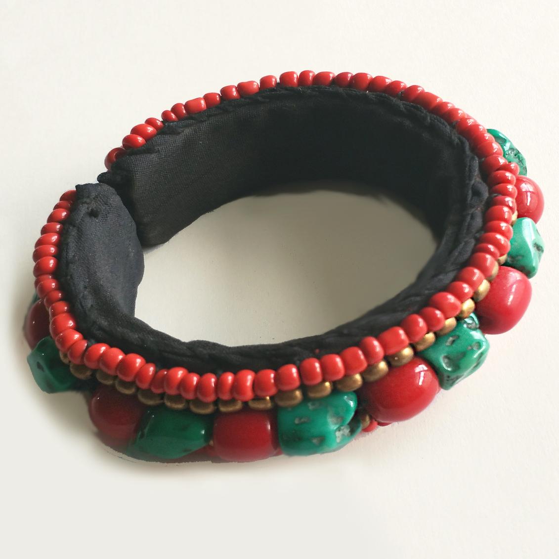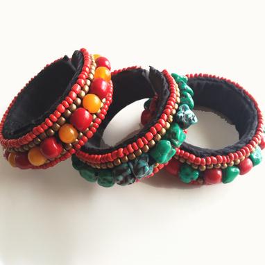 Coral is believed to attract love and prosperity, and the rich red color of our Coral Mix Cuffs is especially known to attract passion!. These festive bracelets feature two-stone combinations bordered with rich red coral beads sewn onto a comfy fabric cuff. One size fits all, made exclusively in India.