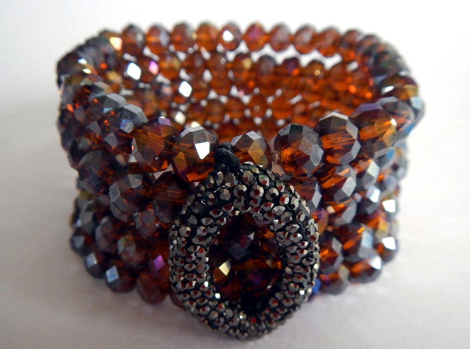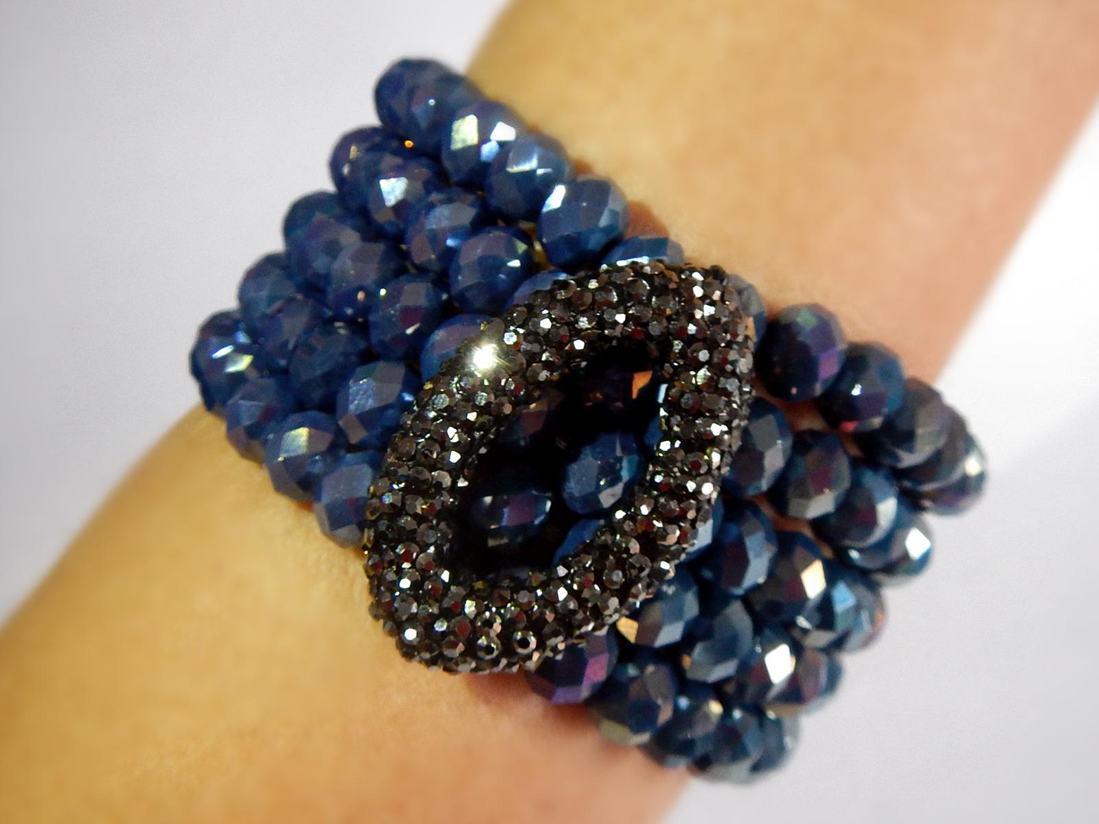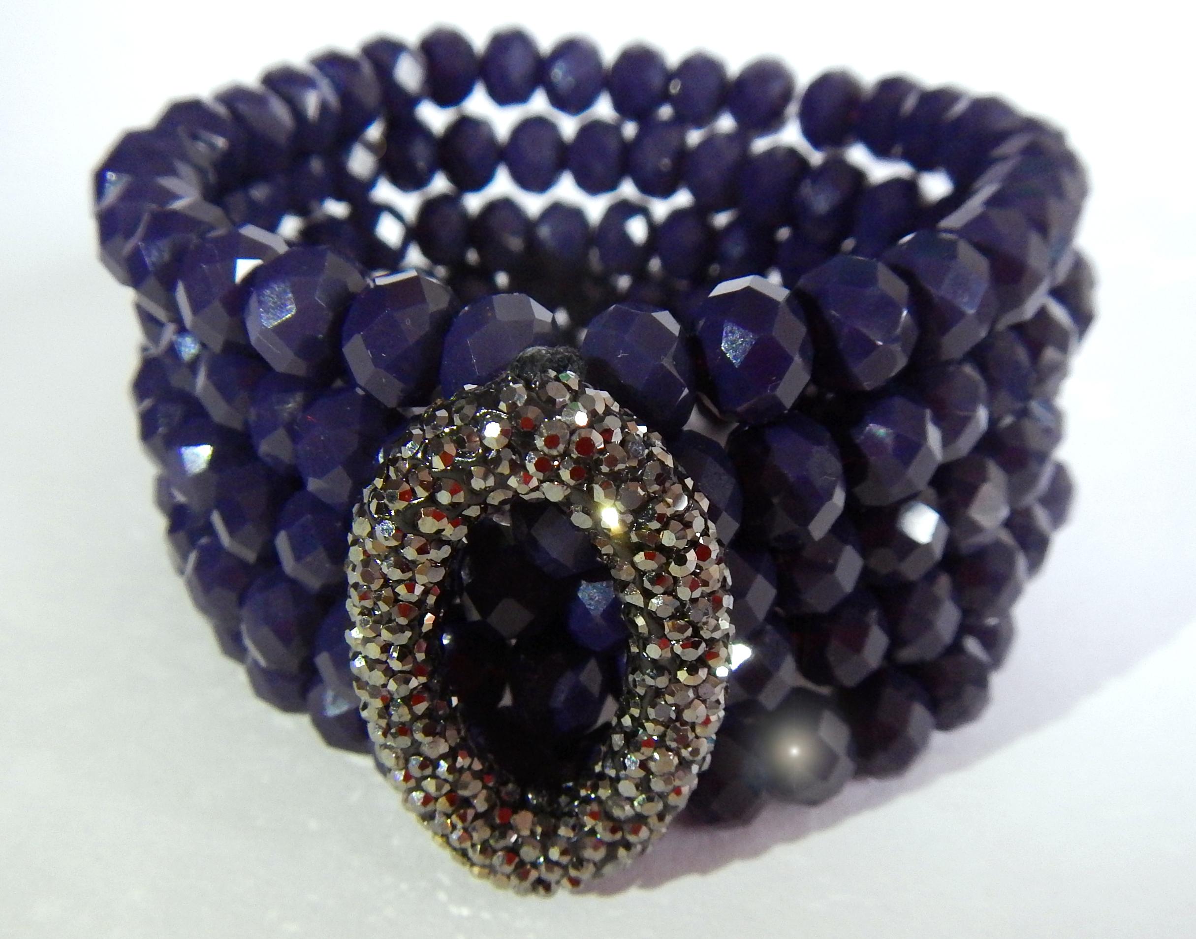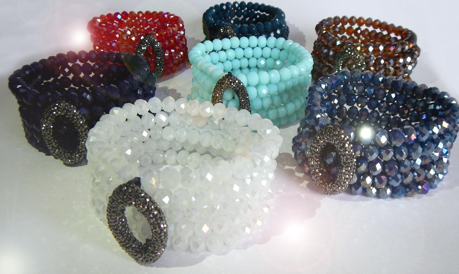 Elegant bracelets are handmade exclusively of Swarovski crystal beads and viscose threads for lasting quality and comfort. One-size-fits-all with adjustable tightening.