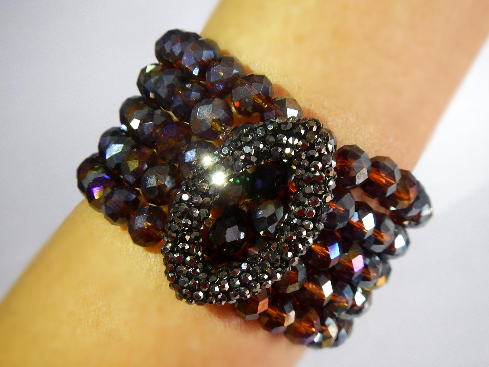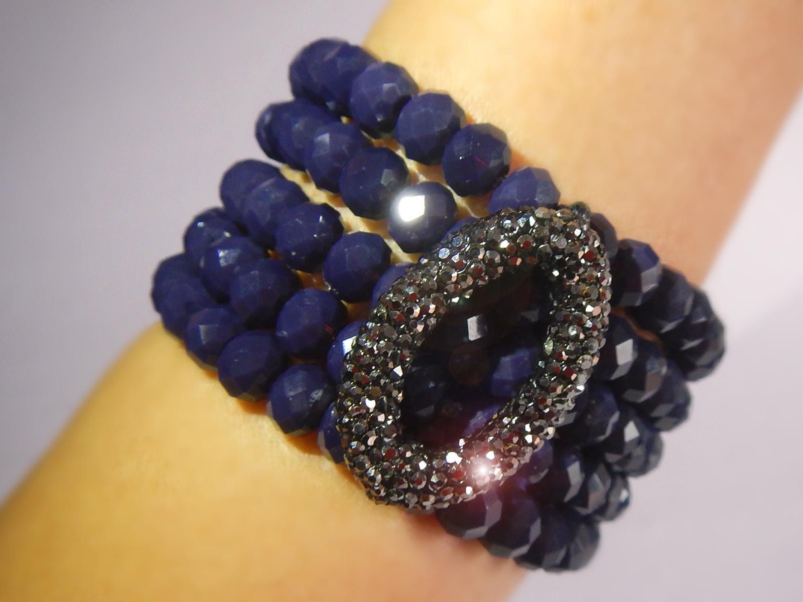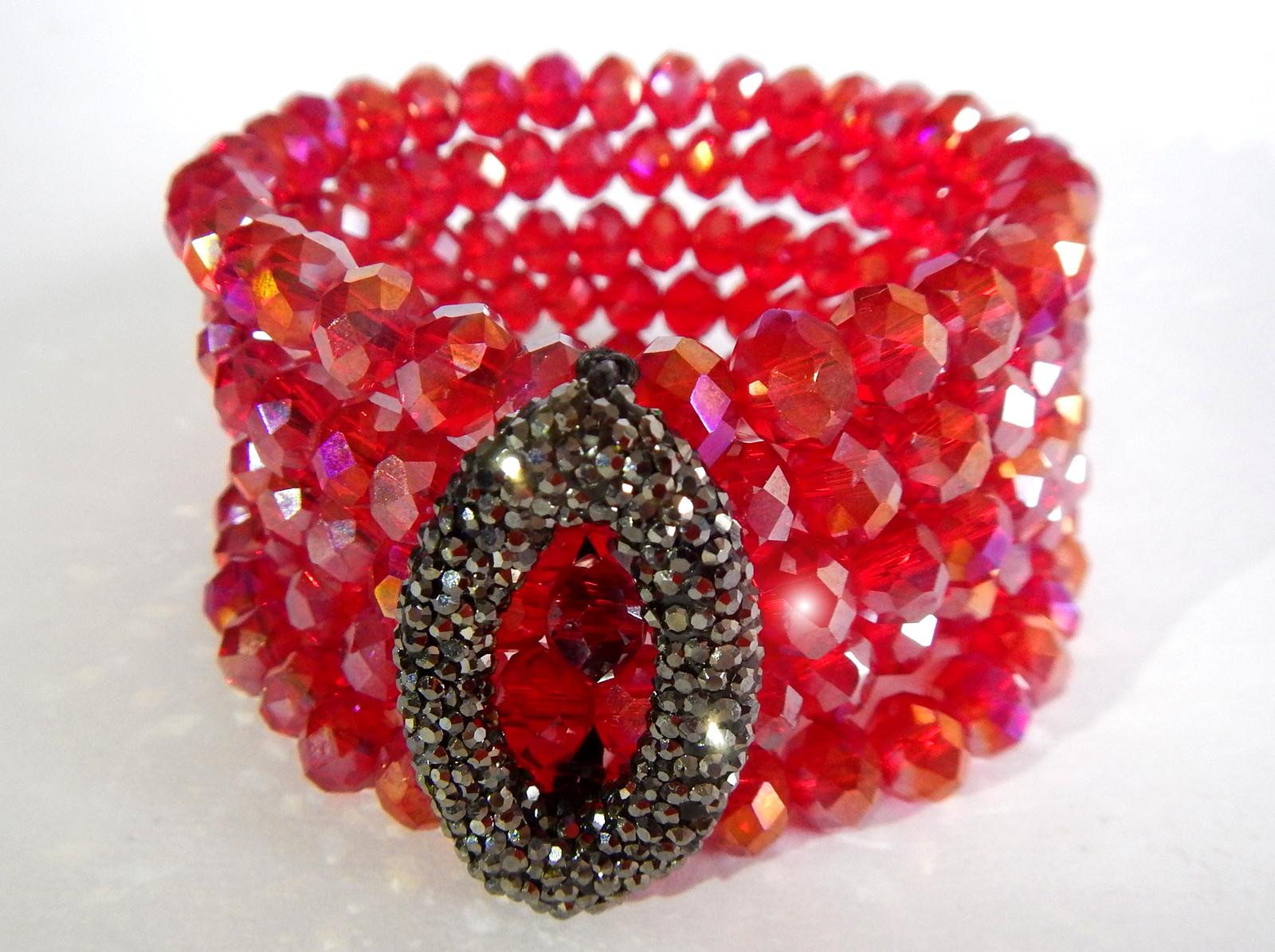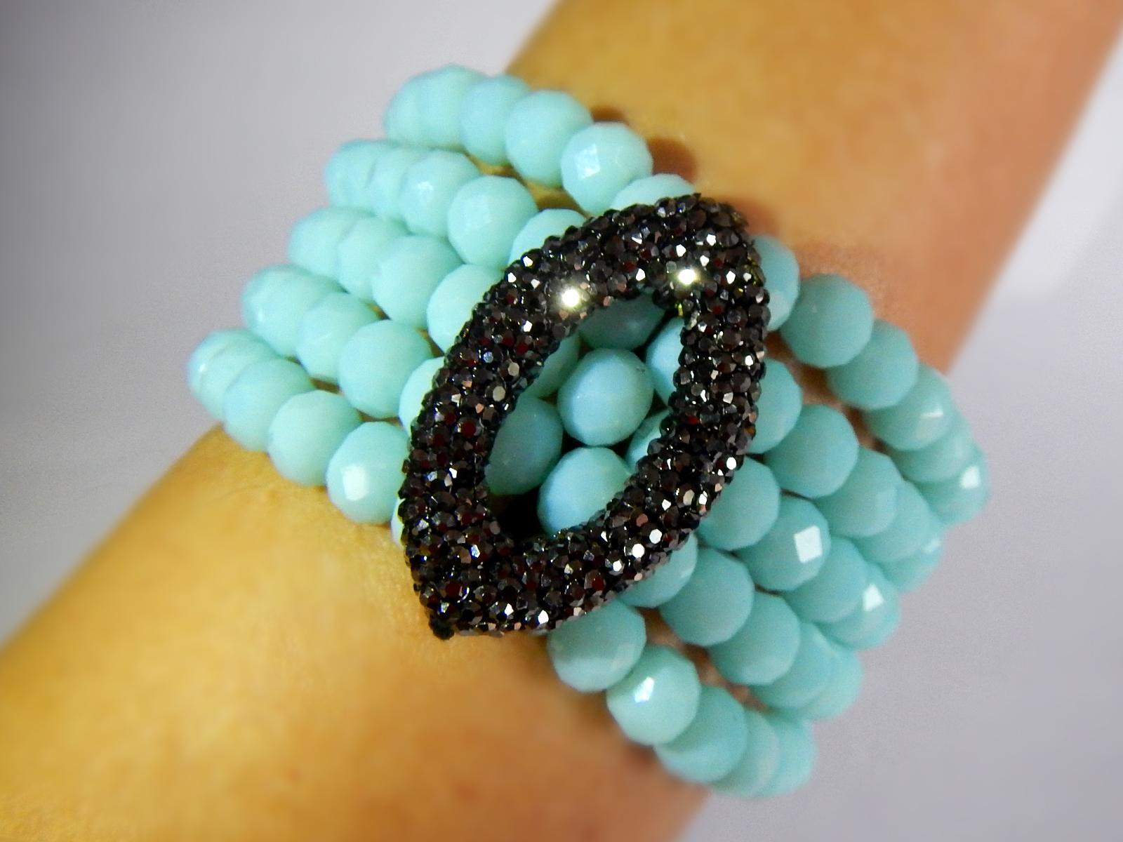 Elegant bracelets are handmade exclusively of Swarovski crystal beads and viscose threads for lasting quality and comfort. One-size-fits-all with adjustable tightening.