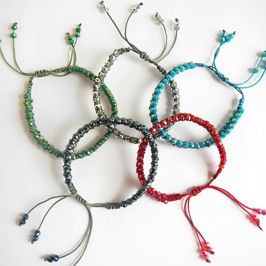 Sai Sin bracelets are thought to offer good health and protection to those who wear them. Our Sai Sin bracelets are handmade exclusively of Swarovski crystal beads and viscose threads for lasting quality and comfort. One-size-fits-all with adjustable tightening. Perfect for stacking!
