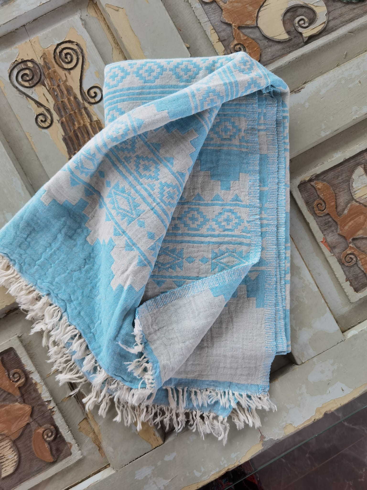 All of our Turkish towels are hand-loomed exclusively in Turkey, making them lightweight, incredibly soft, and absorbent. They are perfect for bath towels or beach blankets, ideal for travel lovers, and can even be used as a fashion accessory.