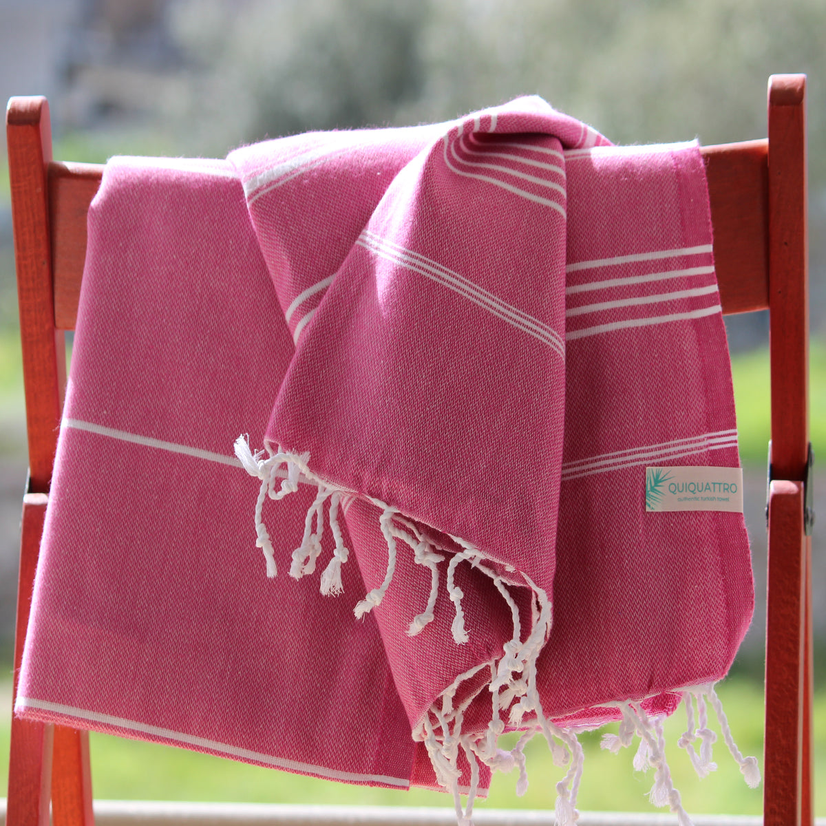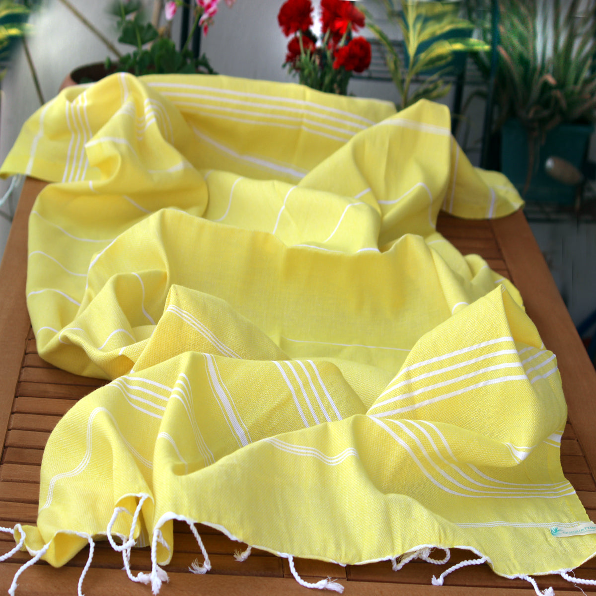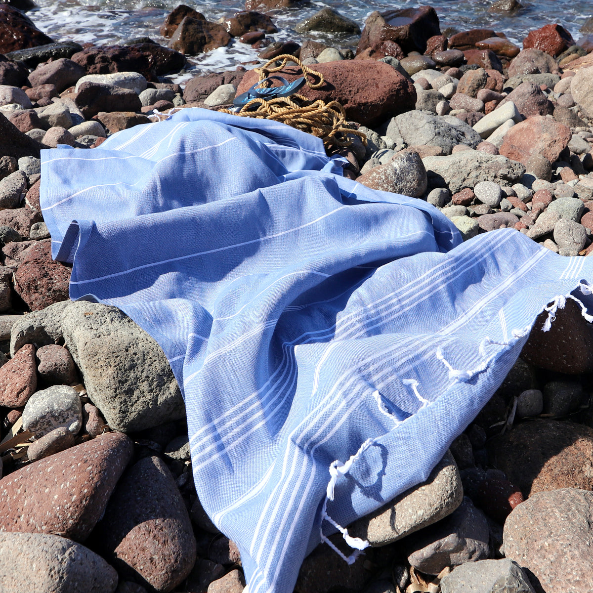 All of our Turkish towels are hand-loomed exclusively in Turkey, lightweight and absorbent. Turkish Towels naturally become even softer with each wash and use. They make perfect bath towels or beach blankets, are ideal for travel lovers, and can even be used as a fashion accessory.