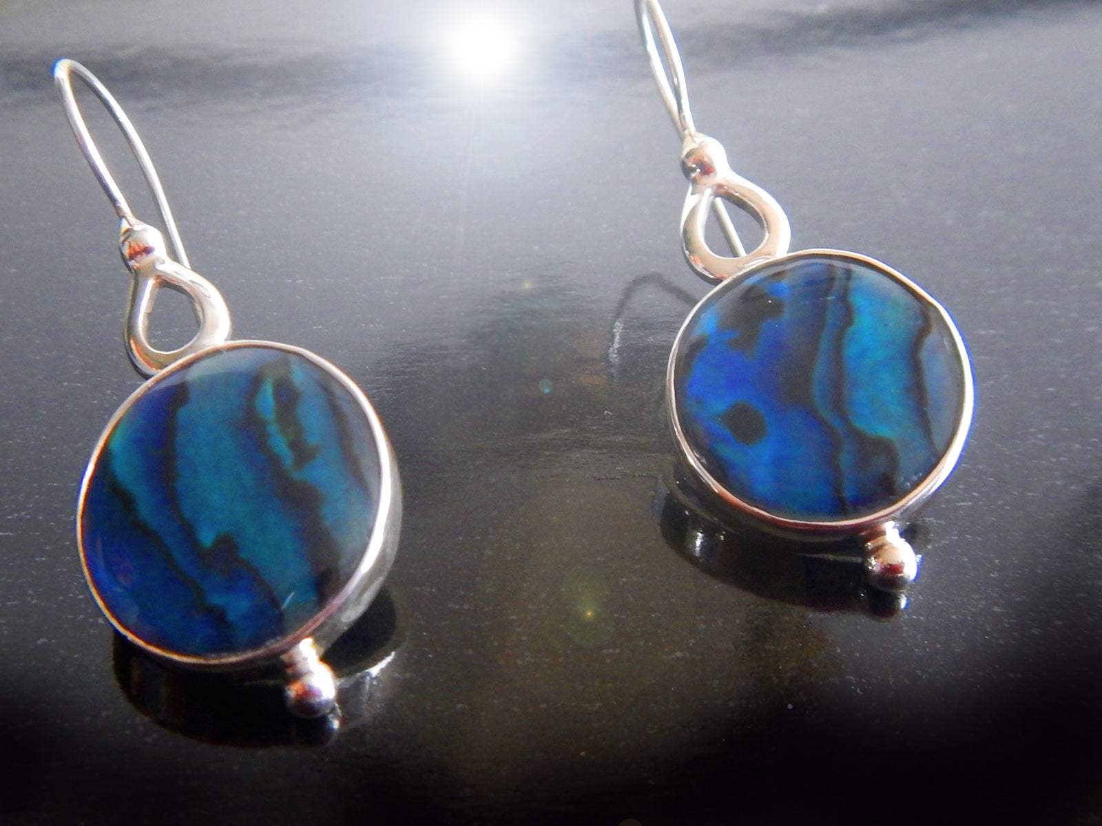 The Azure earrings are elegant and timeless, with natural dark blue mother of pearl set in a polished sterling silver setting. 925 silver.