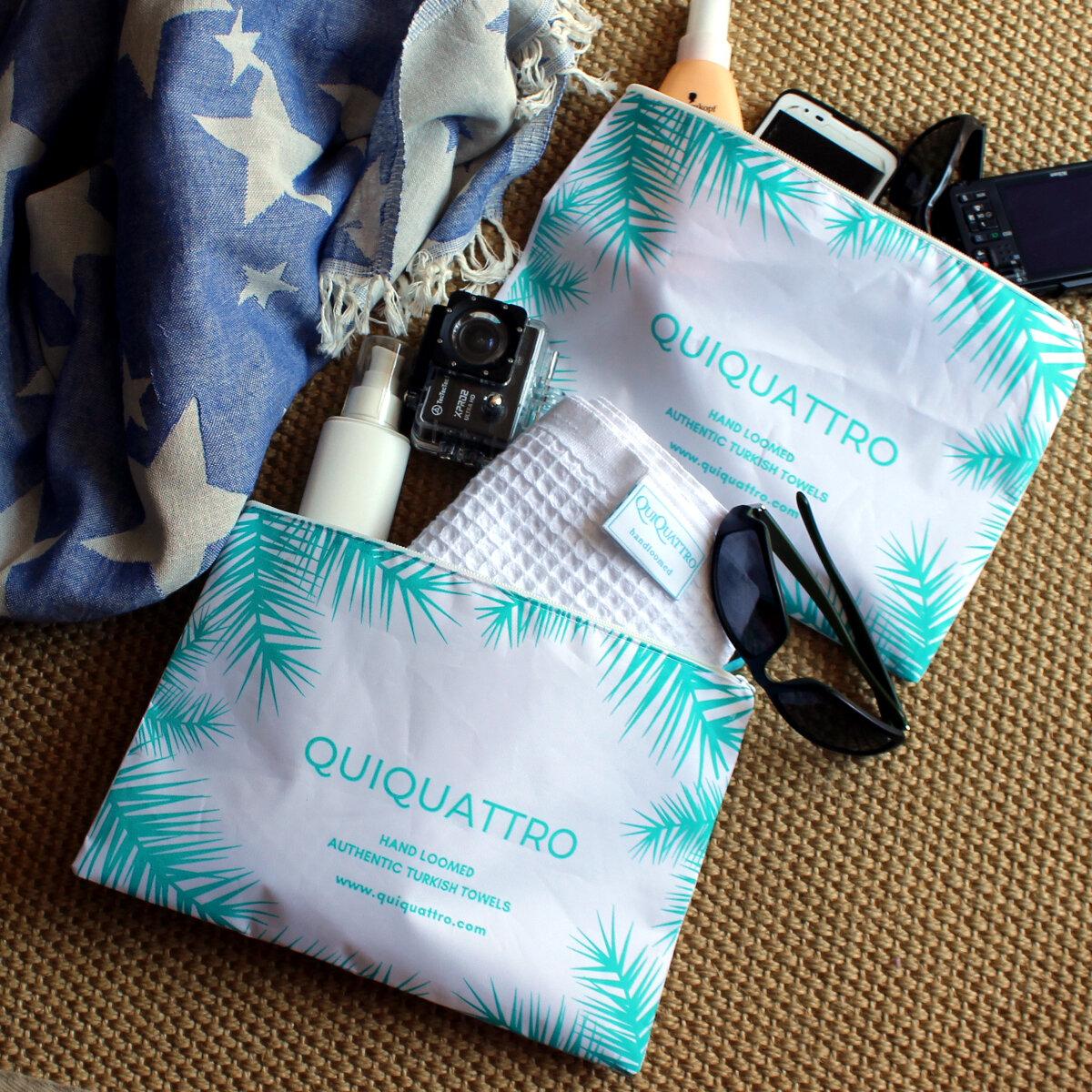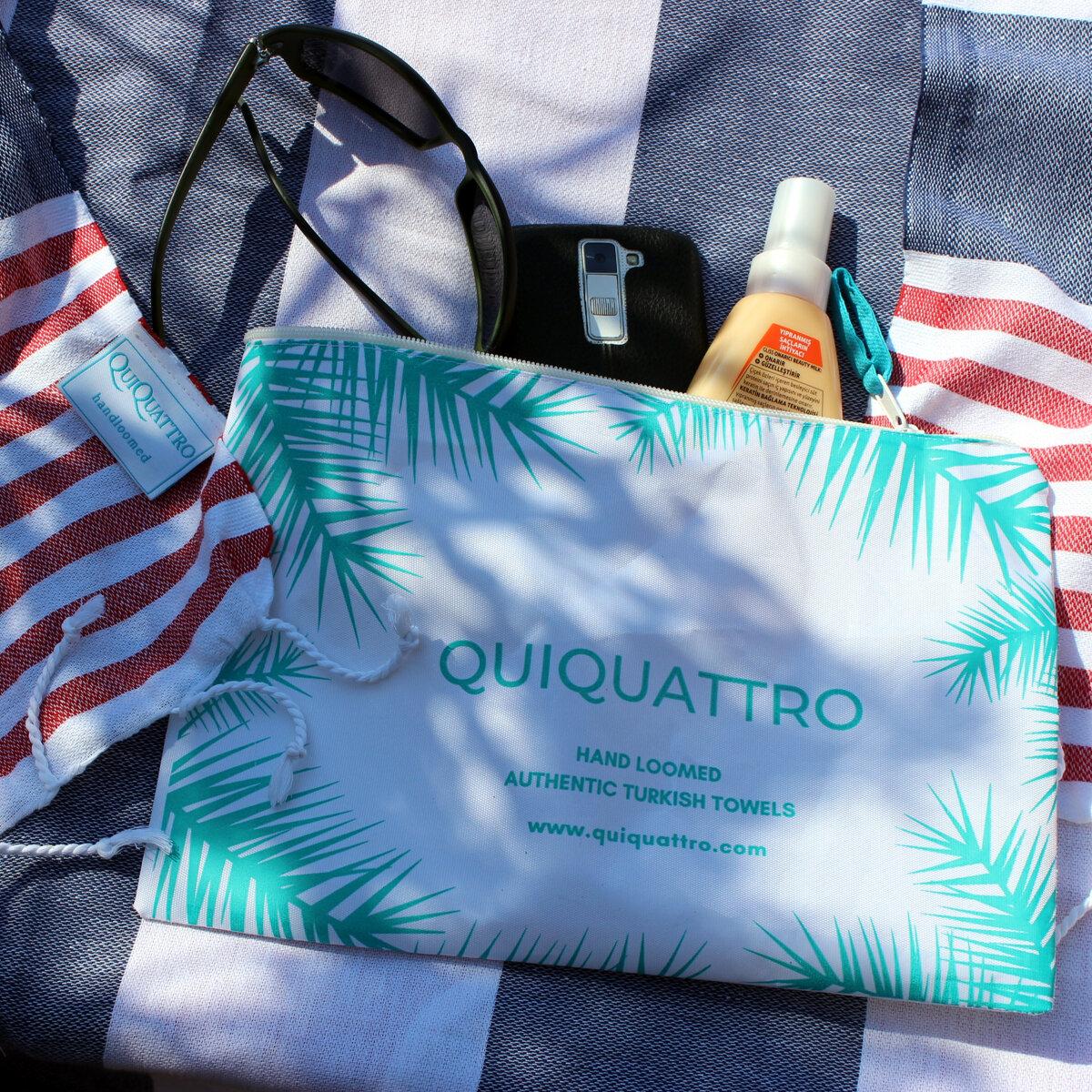 QuiQuattro wet bag is waterproof so you can safely store your wet swimsuit or carry your Turkish towel or any other belongings. This bag will be a great addition to your beach bag. Great organizer Keeps your wet items separate. Carry your sunscreen, keys or keep your wet items in the bag on your way back from the beach.