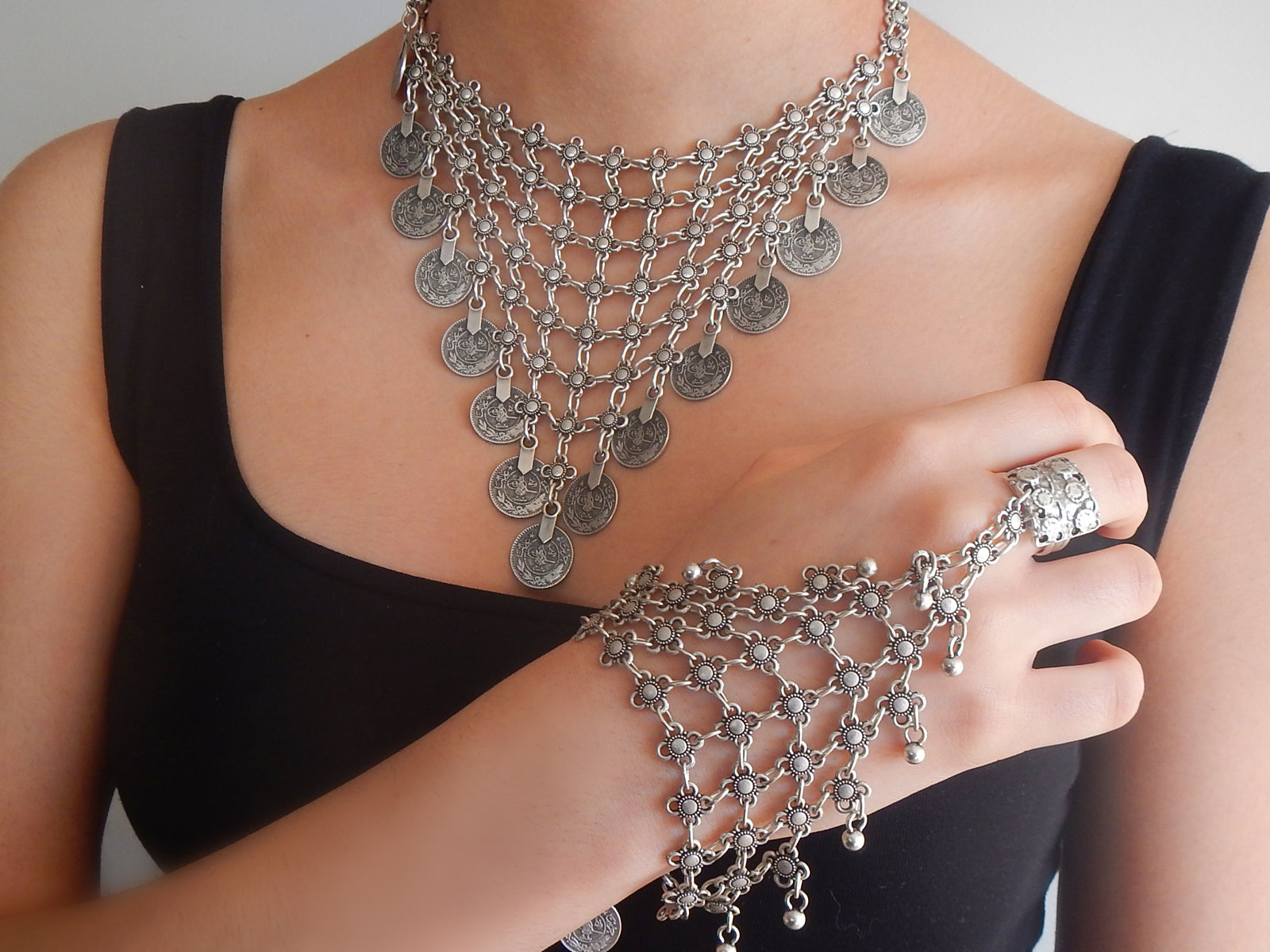 Beautiful silver plated necklace and bracelet set. Elegant and very stylish. One size fits all. Made in Turkey
