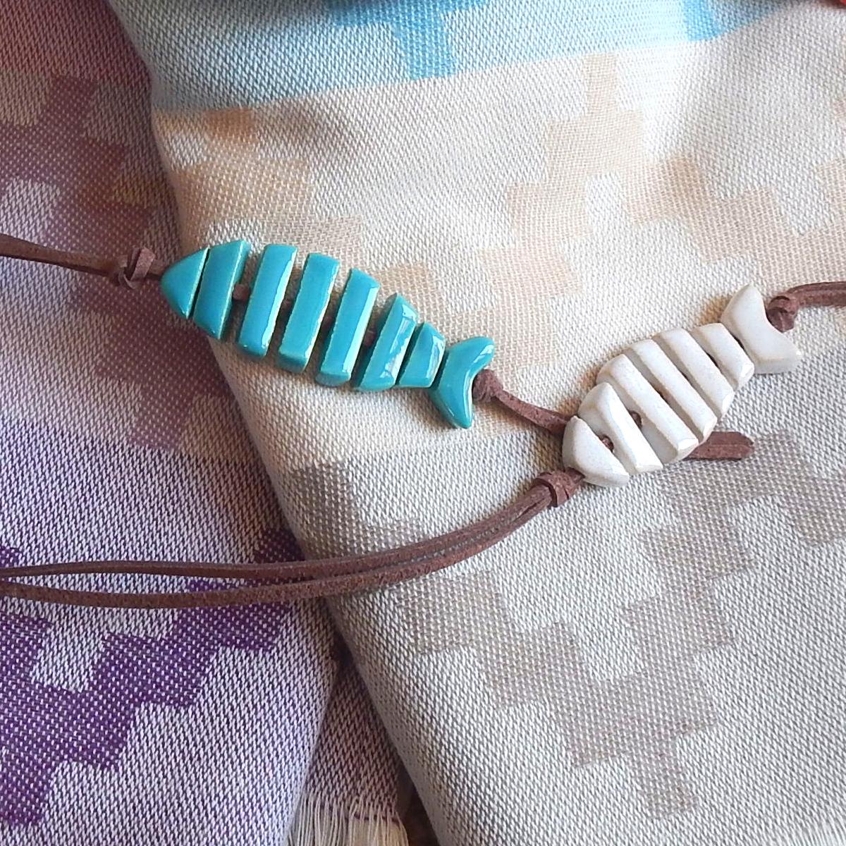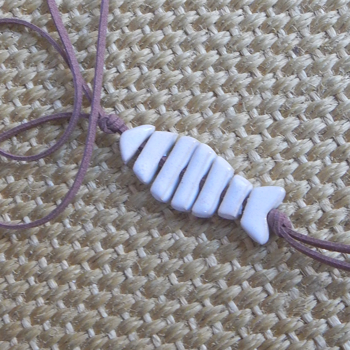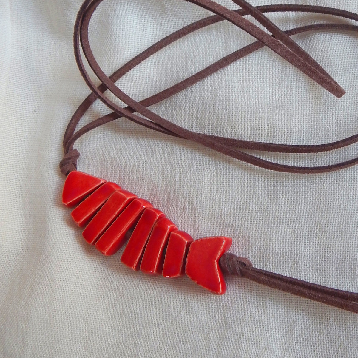 Hermosa is an elegant and minimalist necklace. All pieces made by hand and glazed, it is unique and each necklace will be slightly different from each other. Comes in three colors Cream, Red and Turquoise . 22 inches long. Like the name those pieces are just beautiful, and delightful to wear. This necklace remind you being on vacation forever.