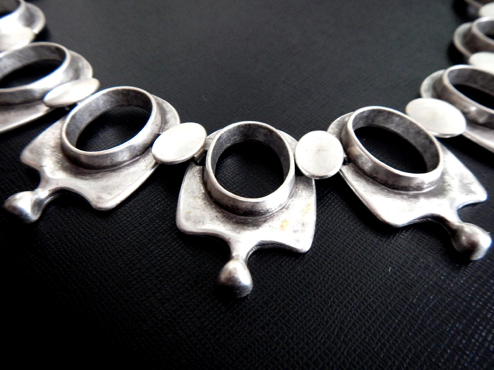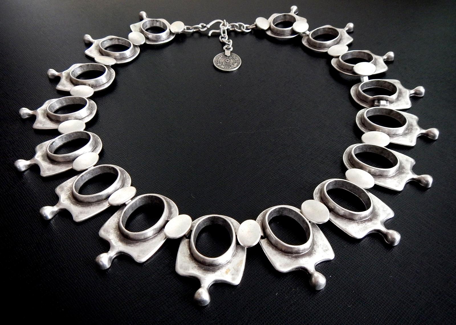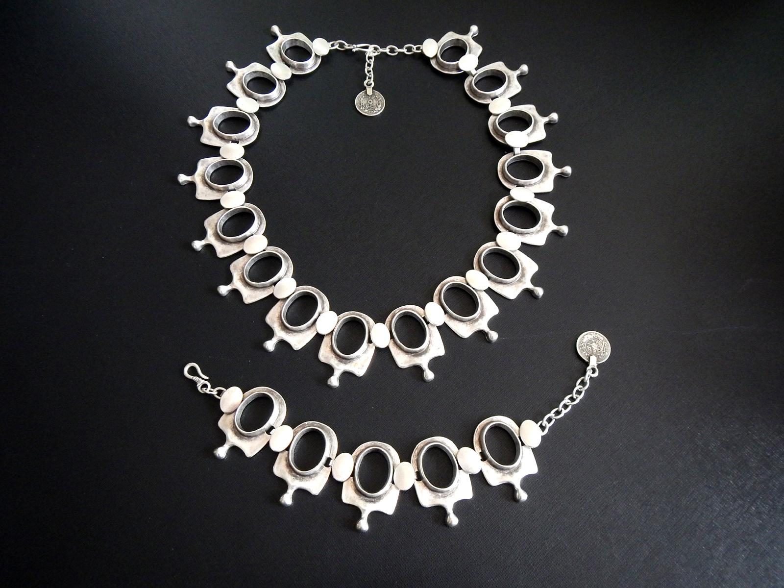 Silver plated statement necklace, and bracelet set is certainly eye catching. Beautiful and