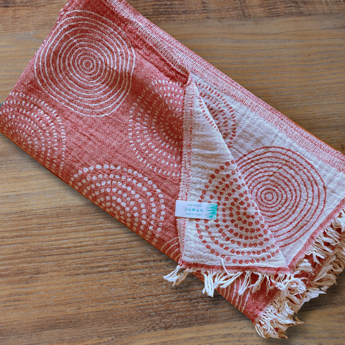 Unveil the extraordinary with our Moon and Sun Turkish Towel Duo, a stunning convergence of tradition and modernity. Each towel in this set, adorned with distinctive red and white primitive circles (Sun) and captivating black and white patterns (Moon), encapsulates the rich heritage of Turkish towel craftsmanship.