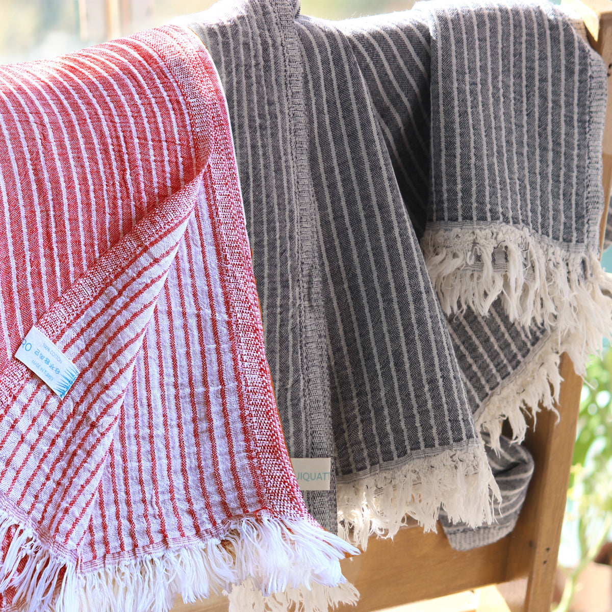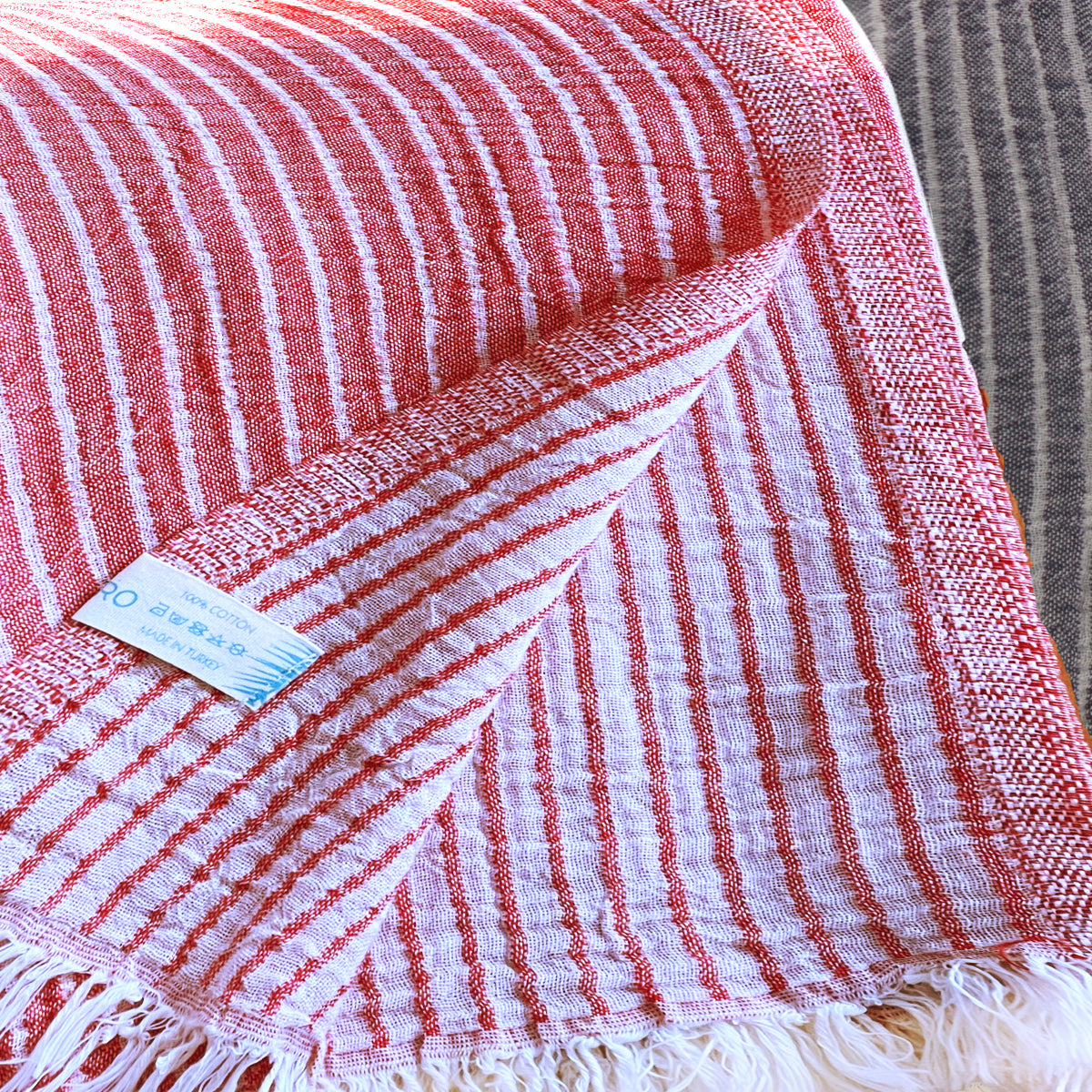 Introducing our Steady Dreams Turkish Towel Set - Red and Black Striped Elegance!