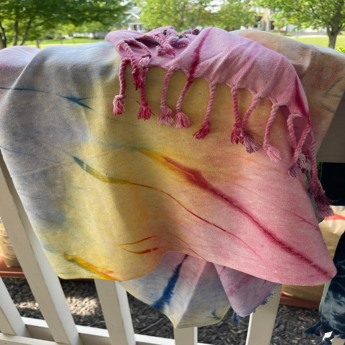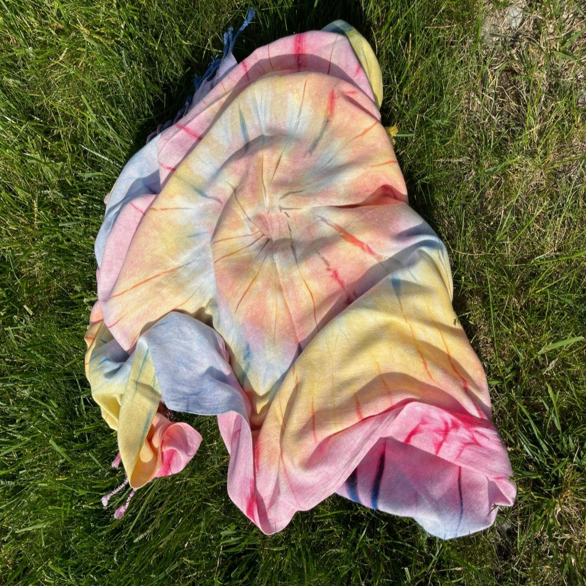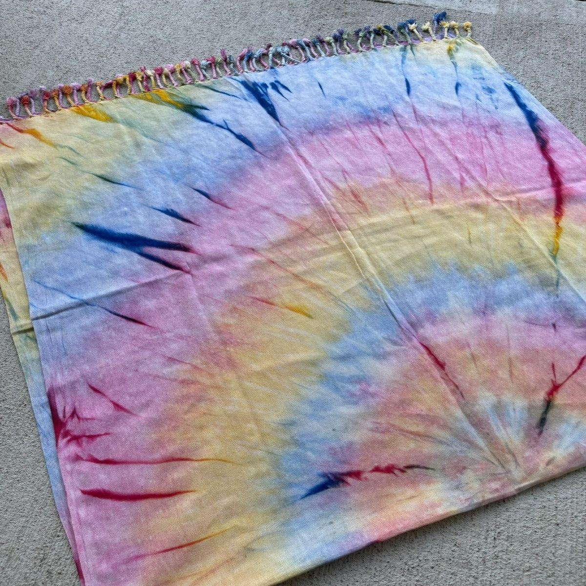 Experience the vibrant charm of our Wonder Peshtemal, perfect for the beach, camping, or any outdoor adventure. Each towel is a unique masterpiece, hand-loomed with care and dyed in a mesmerizing rainbow tie-dye pattern, ensuring no two towels are exactly alike.