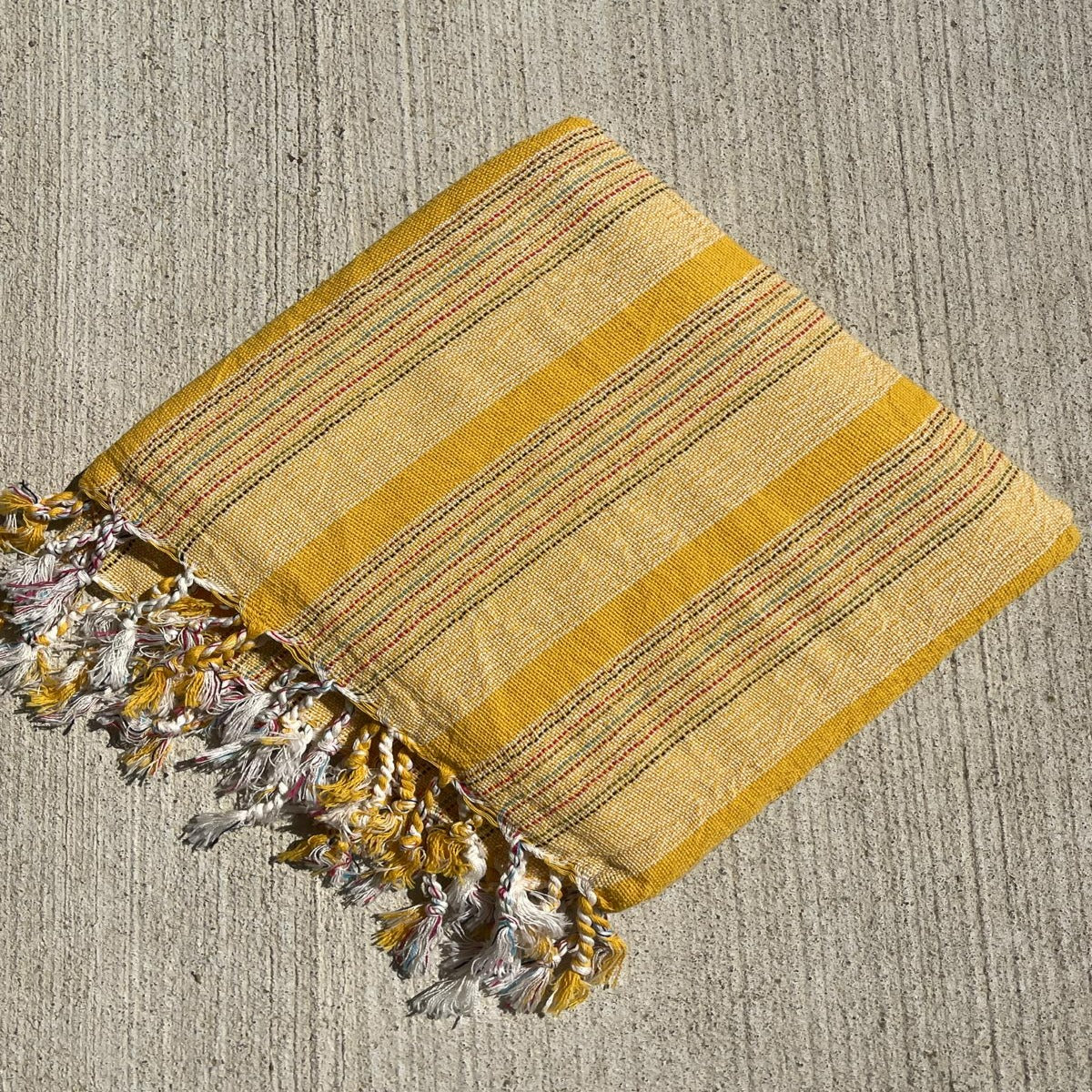Elevate your beach days with our Beach Days Turkish Towel, a vibrant and stylish essential for your summer adventures. Featuring a bright yellow hue accented with colorful dotted lines, this towel is both eye-catching and practical, perfect for lounging by the water or soaking up the sun.