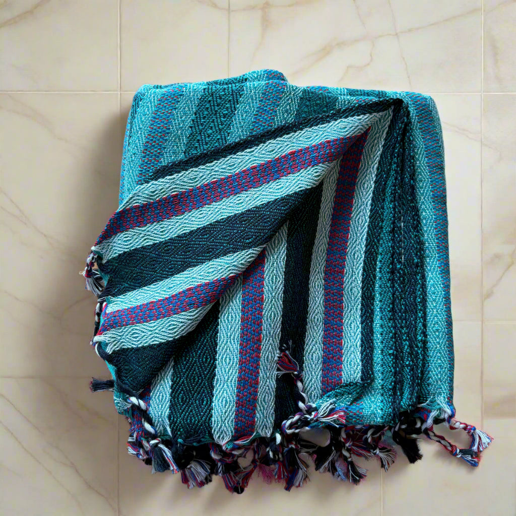 Hand loomed from 100% natural cotton. Turkish Towels naturally become even softer with each use and wash. Due to the looming process each towel is unique and slightly different. This adds to the beauty of the final product.