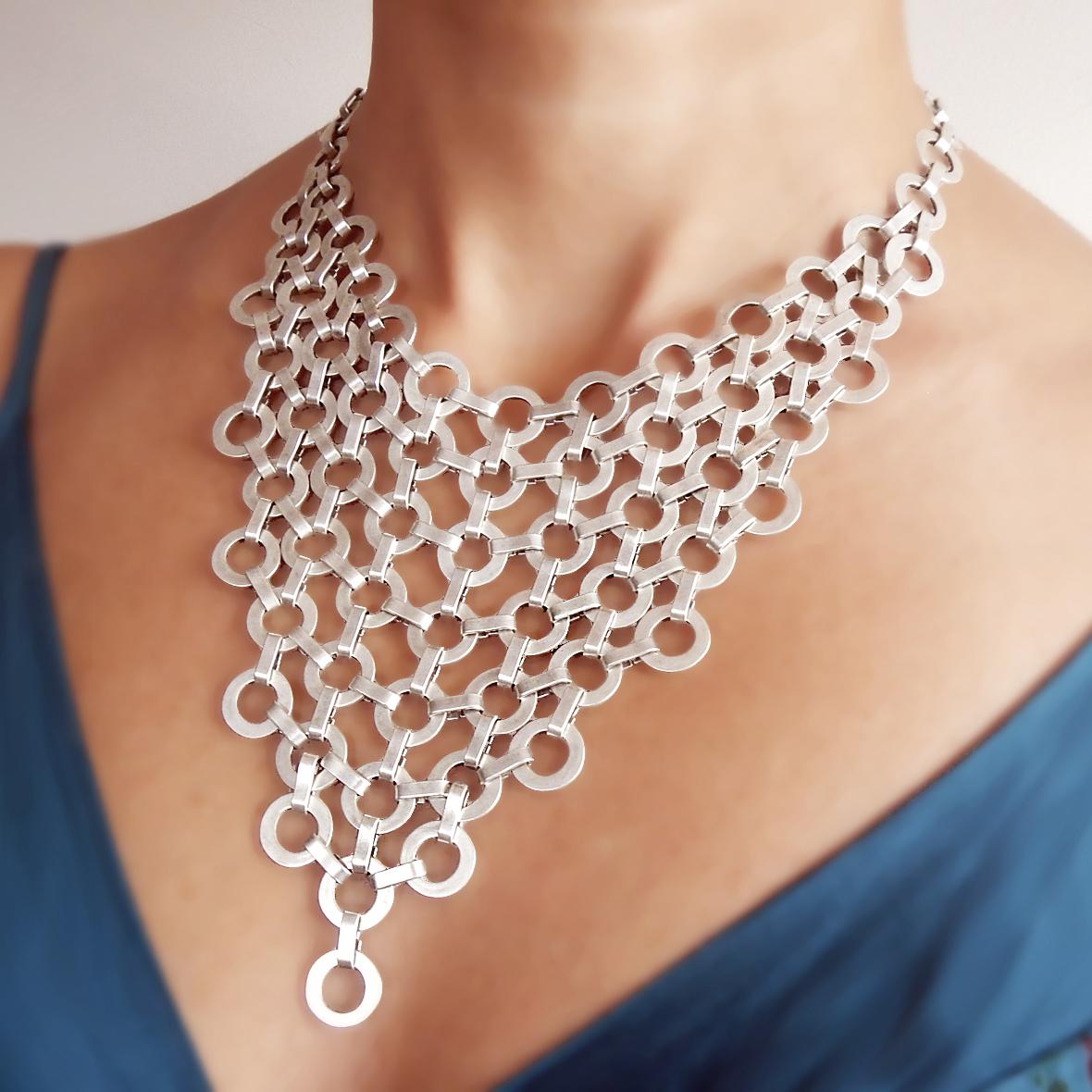 Circles is a soft yet bold statement piece with a modern look. Silver-plated brushed metal circles dangle together and taper off for a flattering silhouette that stands out.