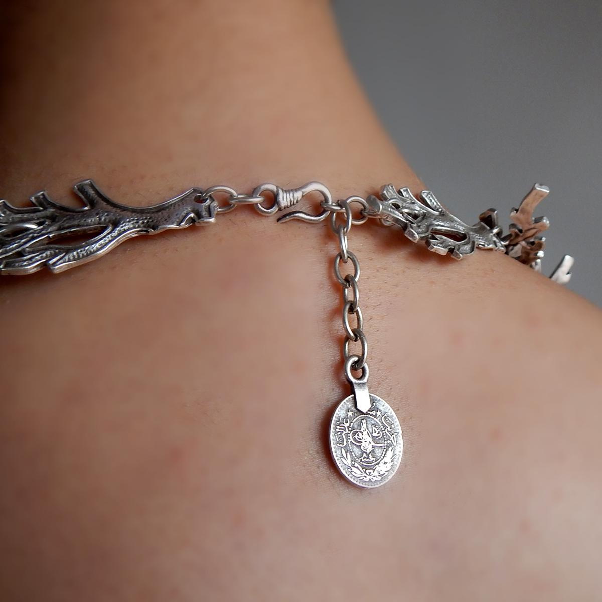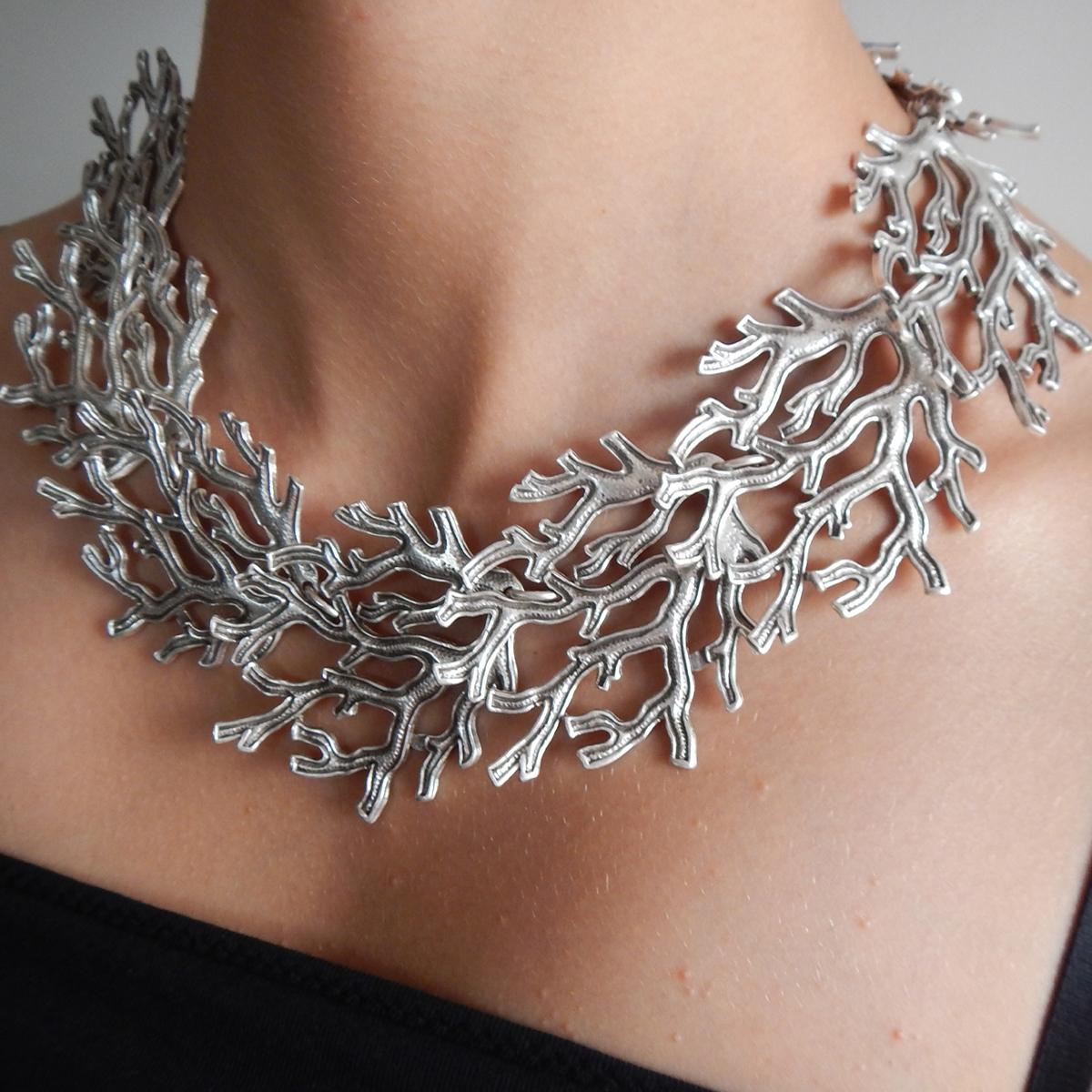 Coral Love is an elegant and dynamic statement piece ideal for summer or the beach. This silver-plated necklace's etched details perfectly capture the beauty of natural coral. Simple hook and loop closure.