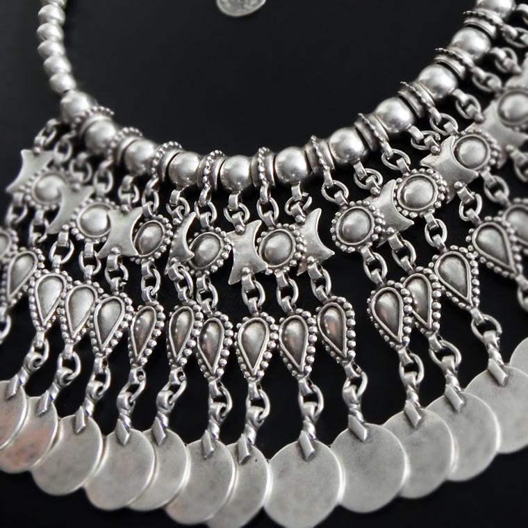 The Festival necklace is a feast for the eyes. Elaborately layered silver-plated beads and pendants come together in this boho-chic piece perfect for a dancing queen.