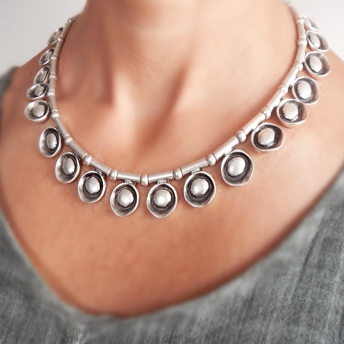 Capture the moonlight with this unique necklace inspired by the full moon and it's glow, with silver plated elements.