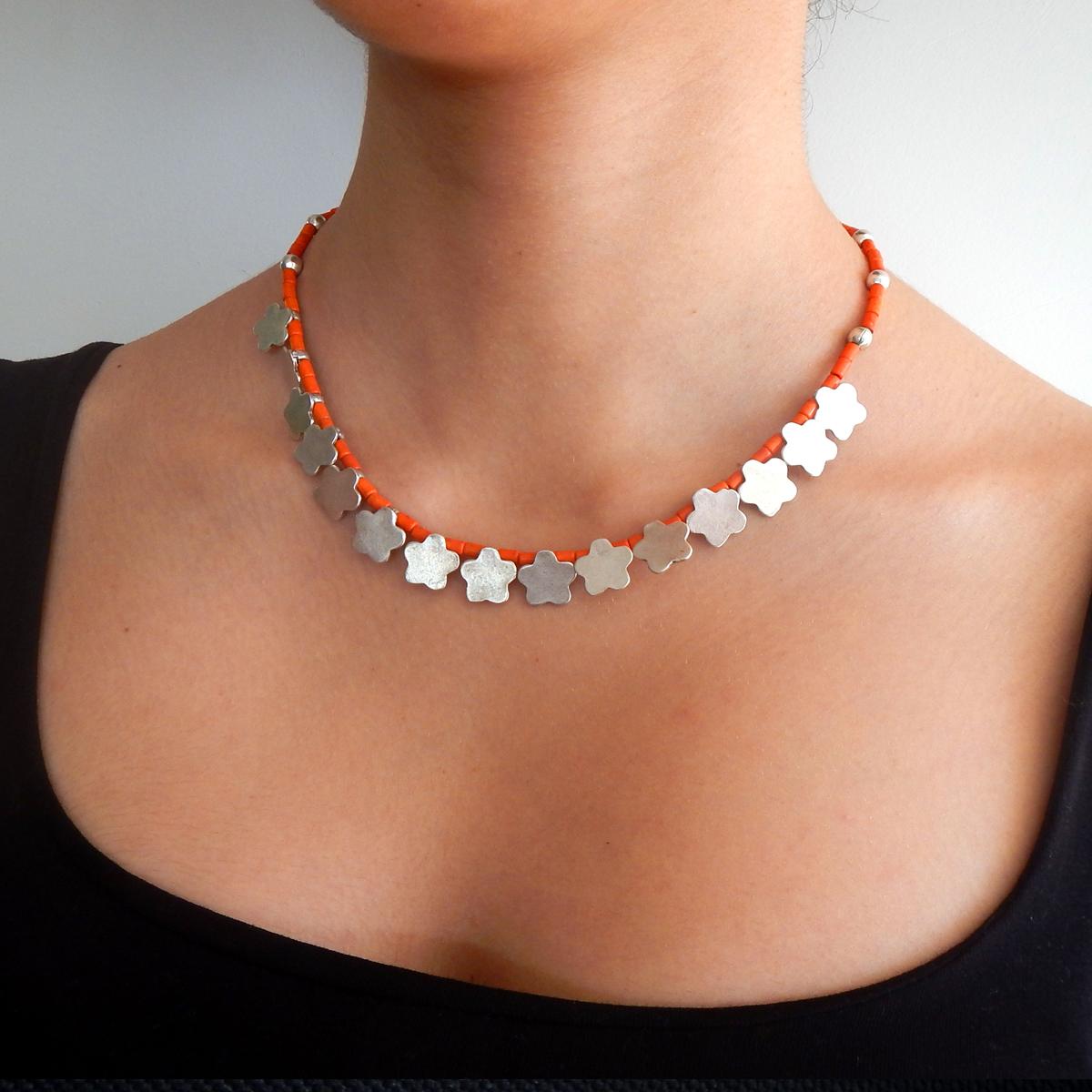 Because you're a star! Twinkle twinkle adds a little fun and whimsy to any look with silver-plated stars and a pop of color with bright orange beads.